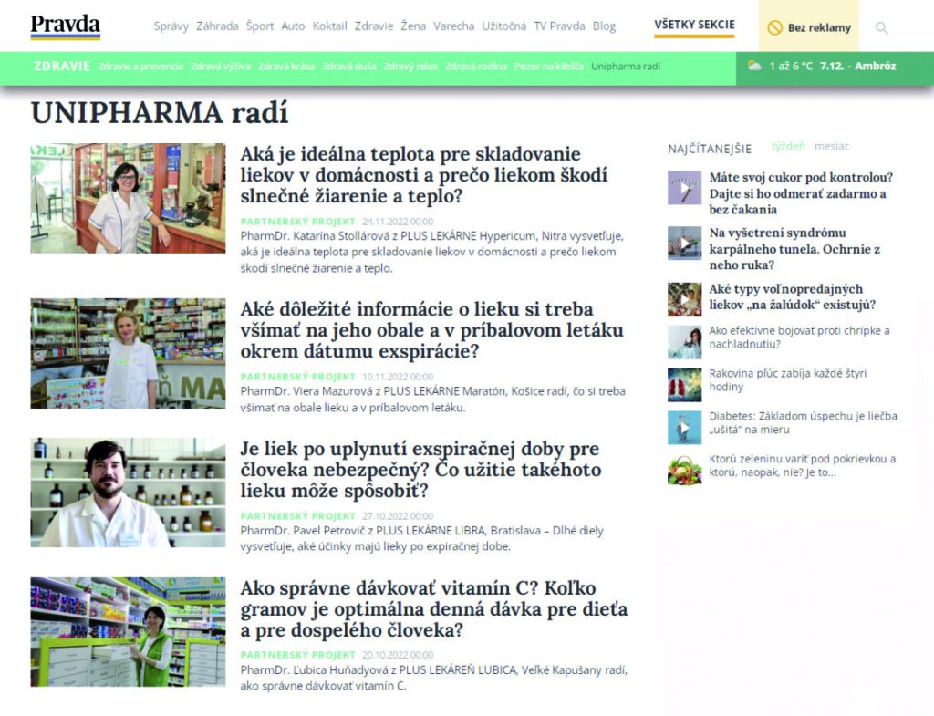 Z dôvodu neustáleho prispôsobovaniu sa požiadavkám trhu a zvyšovania kvality poskytovaných služieb, rozšírila UNIPHARMA — 1. slovenská lekárnická akciová spoločnosť svoju činnosť. Okrem manipulácie s tovarom za bežných podmienok a manipulácie s „chladničkovým” tovarom, už v súčasnosti zabezpečuje aj mraziaci režim. Každý lekárnik dobre vie, že liek obsahuje jednu, prípadne viac účinných látok, ktoré vykazujú…